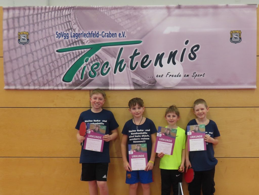 Am 14.02 fand der Ortsentscheid der Mini-Meisterschaften in der Turnhalle Graben statt. Unter der Turnierleitung von Brigitte Becht half der SpVgg Lagerlechfeld im Hintergrund mit. Insgesamt haben sich 15 Minis vorgefunden, die ihre aktuellen Leistungen präsentiert haben. Insgesamt wurden fünf von sechs Altersklassen ausgespielt. Ein Teil qualifiziert sich für den Kreisentscheid weiter. Auch vier Lagerlechfelder nahmen in den jeweiligen Altersklassen teil. Hier wollen wir unseren Nachwuchsspielern Johannes Klaus, Paul Rudolphi und Johannes Geißlinger zum ersten Platz in ihren Altersklassen gratulieren.