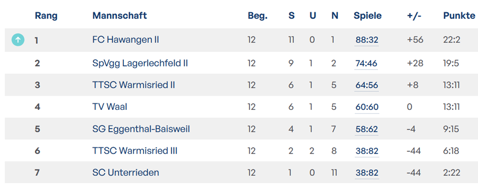 Auch die Jugend hatte im März drei Spiele absolviert. Eines davon war am sechsten März Zuhause gegen den VfL Buchloe IV. Unsere Jugend hat sich gut geschlagen und mit 7:3 gegen Buchloe gewonnen. Eine Woche später fand das Derby gegen den SV Untermeitingen V statt. Es waren spannende Spiele dabei. Vor allem gegen Mia Dumalski mussten unsere Spieler immer in den fünften Satz gehen. Nils Walter holte drei Punkte, einen davon im Doppel mit Sandro Franke. Anna Becht gewann den vierten Punkt. Dennoch waren die Untermeitinger etwas stärker und unsere Jugend verlor 4:6. Am 21. März war das Auswärtsspiel gegen SpVgg Langerringen II. Unsere Jugend mit Sandro Franke, Leon Franke und Anna Becht hatten einen guten Tag und trafen fast alles. Dadurch holten sie sich einen 1:9-Sieg. Das letzte Spiel gegen Ettringen wird am 24.04 ausgetragen. Dann wird die Abschlusstabelle zusammen mit dem Ergebnis des Relegationsspiels folgen.
